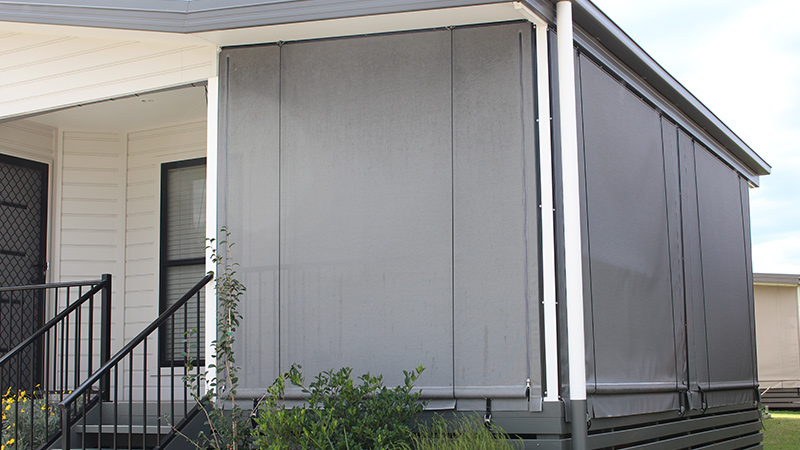 Shade your living area without blocking the breeze. Down for privacy or up and out of the way for extra light.
